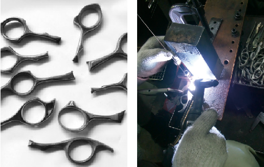 刃材とハンドルは、性質の異なる金属であると共に、繋ぎ合わせる箇所が薄いため、溶接作業には優れた技術が必要とされます。